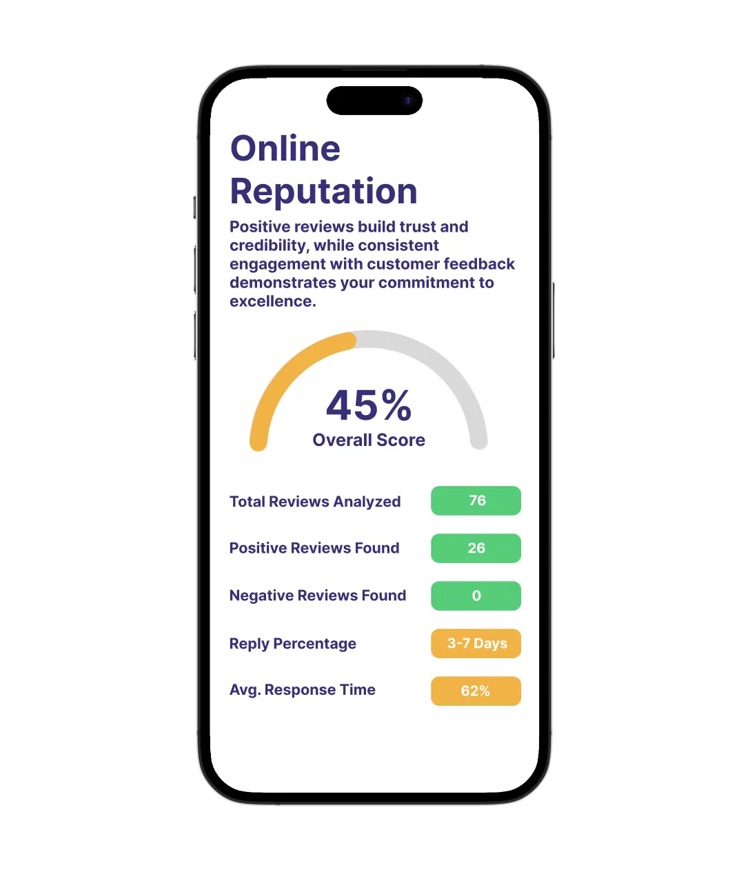 Most customers search online before choosing a business. If your listings are inaccurate, your reviews go unanswered, or your website is slow, you’re losing leads to competitors. The report shows you exactly where you can improve to get ahead.